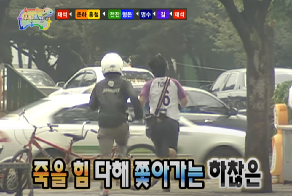 정준하가 마라톤 10km 완주하는 미션을 했던 것을 추억하는 것 같습니다.