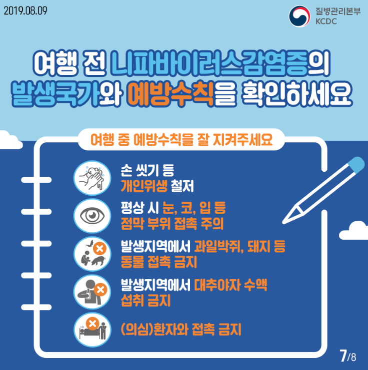 특히 인도, 방글라데시 등 니파 발생국가 여행 시 주의가 필요합니다.